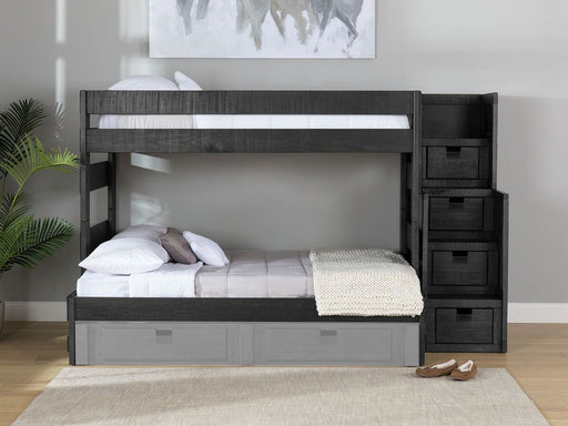 Elements International Cali Kids Twin over Full Bunk Bed with Staircase in Sleek Gray
