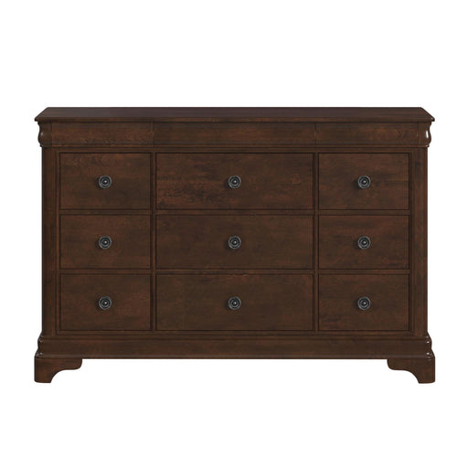 The Cameron Cherry Queen Panel 3PC Bedroom Set combines curves and sleek lines with a warm cherry finish to render classic refinement. The bed has a gently arching headboard with carved panels and a slow footboard. The matching case pieces offer ample storage for all of your belongings. Features: • Traditional Cherry Finish • Nightstand features four drawers including the felt lined hidden top drawer • Drawers feature full extension metal side glides with built in stops. Dust proofing on bottom drawers for added protection • Antique brass decorative knobs • Elegantly curved sleigh headboard and low footboard • Louis Philippe • inspired styling. Requires both mattress and box spring "“ sold separately Dimensions: Depth: 94.0" x Width: 66.0" x Height: 55.0" Weight: 375.0 lbs.