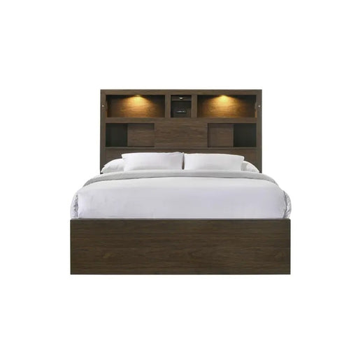 Elements International Kingston Queen with Footboard and Rail Storage Bed in Walnut