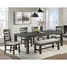 The Colorado dining collection, brings boldness to a casual dining scheme. With a trestle base design and a deep finish, this everyday counter height table serves as a perfect gathering space. Enjoy an attractive chevron design on its table top while accommodating deep chairs and extra storage. The inventive table design creates options for positioning to suite your needs. The slat back design of the chair and the black hardware finishes, reflect a design-forward blend of modern and farmhouse concept. Features: • Crafted from Solid Wood • Acacia Veneer Surfaces • Distressed with saw makings and skiving detail • Foam Cushioning • upholstered in cream fabic • Tapered Legs • Modern Farmhouse Design • Easily Assembled Dimensions: Depth: 18.0" x Width: 48.0" x Height: 20.0" Weight: 26.0 lbs.