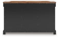 Raise the bar on modern farmhouse style with this dining buffet. Its handsome good looks are accentuated with a two-tone finish and a casual butcher block veneer top. The sturdy silhouette adds a hearty element, whether your style is vintage, country or eclectic. Three drawers and three cabinets with adjustable shelves serve your entertaining needs well.