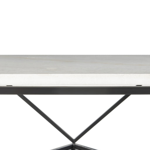 Riko Square Coffee Table - White Marble Table Top - Square Design - Powder Coated Metal Legs - Intricate Base - Contemporary Design - Sleek, Clean Lines Marble Iron Bolts 36 D x 36 W x 18 H, 70lbs. 1 Year Limited Manufacturer Warranty