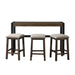 The Caesar Multipurpose Bar Table Set is a remarkable piece for your home. This set can be placed anywhere in your home, from a kitchen nook to a spot behind the sofa in the living room. This set includes one bar height table and three bar stools. The barstools are upholstered with Taupe fabric, and a foam cushion seat; which enhance your comfort when just sitting finishing up work or watching TV. Also, distressed markings can be found throughout the entire set which gives this piece that rustic vibe you have been looking for. Another amazing feature this set offers is a USB and plug outlet. The days of having to stretch your power cord from the wall to your table are long gone! So grab your laptop and set up shop with this amazing bar table set. Features: • Multipurpose Bar Table Set • Includes: Bar Table and Three Bar Stools • Two USB Ports • Two Power Outlets • Ships in One Box • Upholstered Seats • Taupe Fabric • Distressed Markings Throughout • Straight Legs • Stretchers along Barstools • Piping along Seat Cushions • Rustic Design Weight: 79.0 lbs.