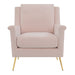 The Cambridge Accent Chair is living room goals! This mid-century style chair features gold legs, adding extra flair to this already stylish set. Not only is the cushion foam filled, but the oversized, deep seating will make this more than just a pretty chair you display; but one that you will also love to relax in. The straight arms are plush like, and feature a slight overhang. Sleek, clean lines and piping throughout make this chair a standout for years to come. Features: • Accent Chair • Crafted of Plywood and Rubberwood • Upholstered in 100% polyester Amigo Fabric • Available in a variety of colors • Angled Gold Legs • Modern Chic Design • Foam Cushion • Easily Assembled Dimensions: Depth: 35.0" x Width: 30.0" x Height: 37.0" Weight: 50.0 lbs.