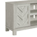 The Eleanor 70"� TV Stand with Sliding Doors is a tasteful addition to your entertainment space. Made of durable engineered wood and accented with a dynamic chevron pattern, two cabinet doors slide to reveal storage space with adjustable shelving. Cable holes are conveniently integrated into the back panel to simplify installing electronics and reduce clutter caused by cords, while practical block feet offer a stable foundation. A smooth veneer finish simplifies maintenance while increasing this piece's longevity, ensuring that the Eleanor 70"� TV Stand will withstand the test of time in your living space. Features: • Made from Durable Engineered Wood • Chevron Pattern Adds Visual Interest • Sliding Doors Reveal Adjustable Shelves • Cable Holes Help to Organize Wires • Block Feet Offer Sturdy Foundation • 70"W x 16"D x 26"H • Due to Lighting, Product Color May Vary Slightly from Images Dimensions: Depth: 16.0" x Width: 70.0" x Height: 26.0" Weight: 90.0 lbs.
