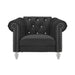 Introducing the Emma living room set - the perfect combination of style and comfort for your home. This set includes a sofa, loveseat, and chair, all featuring a stunning crystal tufted back that adds a touch of glamour to any space. Made with 100% polyester, these pieces are durable and easy to maintain. The set is available in three sleek colors - blue, black, and gray - so you can choose the one that best matches your decor. Upgrade your living room with the luxurious Emma set and enjoy hours of relaxation and entertainment.