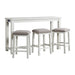 The Stone Bar Table is a multi-functional set. Add this bar table behind your sofa, in front of a window or in your dining room, wherever you want additional seating or table space. The table features a white finish, with clean lines, paried with upholstered barstools. Make the most of your living space with this bar table set. Features: • Multipurpose Bar Table Set • Includes: Table and Three Bar Stools • USB Ports • Power Strip • Ships in One Box • Upholstered Seats • Natural Hue Fabric • Straight Legs • Stretchers along Barstools • Piping along Seat Cushions • Gray Finish with Distressed Marks Weight: 91.0 lbs.