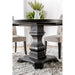 NERISSA Antique Black Round Table, Antique Black, 48"DIA X 30"H, 112.64lbs. Enjoy breakfast, lunch and dinner in style. This round pedestal table comes paired with ivory linen dining chairs to create a luxurious atmosphere. Button tufting and a scrolled backrest emanate a regal and feminine style that pairs beautifully with the antique black finish. Features: Transitional Style Pedestal base Button Tufted Chair Backs Ivory Padded Linen Chairs Solid Wood, Wood Veneer, Others Antique Black Finish