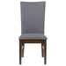 This elegant dining side chair combines comfort and sophistication, making it the perfect complement to any dining table. Upholstered in soft gray fabric on both sides of the backrest and the seat, it offers a cohesive and refined look. The sturdy frame is crafted from Asian hardwood, providing durability and stability. The gently curved back enhances comfort for extended seating, while the neutral gray tone ensures versatility with various decor styles.