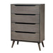 Lennart Gray Chest, 34"W X 17"D X 48"H, 125.4lbs. For a quick modern update to your home, this collection will add that trendy mid-century appeal. Featuring a Gray finish, this chest boast slim flared legs and recessed handle drawer pulls. Features: Mid-Century Modern Style Round Tapered Legs Recessed Drawer Handles Solid Wood/Wood Veneer/Others Gray Finish